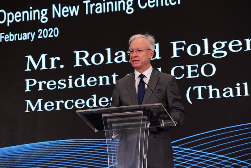มร. โรลันด์ โฟล์เกอร์ ประธานบริหาร บริษัท เมอร์เซเดส-เบนซ์ (ประเทศไทย) จำกัด กล่าวว่า “การเปิดศูนย์ฝึกอบรมของเมอร์เซเดส-เบนซ์ (ประเทศไทย) อย่างเป็นทางการในวันนี้เป็นส่วนหนึ่งใน “แผนกลยุทธ์เพื่อการเติบโตไปยังเป้าหมายในปี 2568 ของเมอร์เซเดส-เบนซ์ (ประเทศไทย) ศูนย์ฝึกอบรมแห่งนี้ก่อตั้งขึ้นภายใต้การลงทุนระหว่างเมอร์เซเดส-เบนซ์ (ประเทศไทย) และ เดมเลอร์ เอจี ด้วยงบการลงทุนกว่า 381 ล้านบาท นับเป็นการตอกย้ำความมุ่งมั่นของเราที่มีต่อลูกค้าในการยกระดับคุณภาพของบุคลากรทั้งในส่วนของการขายและบริการหลังการขายให้แก่อุตสาหกรรมยานยนต์ในประเทศไทย โดยศูนย์ฝึกอบรมของเมอร์เซเดส-เบนซ์แห่งนี้สามารถรองรับ ผู้เข้าอบรมได้ถึง 50,000 คนสำหรับการฝึกอบรมในแต่ละปี และสามารถทำการฝึกอบรมนักเรียนช่างฝึกหัด เมอร์เซเดส-เบนซ์ จำนวน 400 คน ตั้งอยู่บนพื้นที่ 16,300 ตารางเมตร โดยแบ่งเป็นพื้นที่ของอาคารฝึกอบรม 2 ชั้นรวม 12,400 ตารางเมตร พรั่งพร้อมด้วยสิ่งอำนวยความสะดวกสำหรับการจัดการฝึกอบมอย่างครบครันเต็มรูปแบบประกอบด้วยห้องฝึกอบรมแบบอเนกประสงค์สำหรับฝึกภาคทฤษฎี 28 ห้อง ห้องปฏิบัติการ 10 ห้องสำหรับการเรียนรู้ด้านการปฎิบัติการและการซ่อมตัวถังและสี รวมถึงพื้นที่จำลองโชว์รูมเสมือนจริงเพื่อให้พนักงานสามารถสัมผัสประสบการณ์การขาย และการให้บริการหลังการขายได้อย่างสมจริง เราเชื่อว่าศูนย์ฝึกอบรมแห่งนี้จะสร้างบุคลากรที่มีคุณภาพให้กับอุตสาหกรรมยานยนต์ไทยต่อไป”