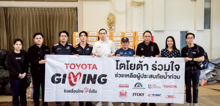 บริษัท โตโยต้า มอเตอร์ ประเทศไทย จำกัด พร้อมด้วยมูลนิธิโตโยต้าประเทศไทย บริษัท สยามโตโยต้าอุตสาหกรรม จำกัด บริษัท โตโยต้า ลีสซิ่ง ประเทศไทย จำกัด บริษัท โตโยต้า ออโต้ เวิคส จำกัด กลุ่มบริษัท เจเทคโตะ (JTEKT) ประเทศไทย ชมรมความร่วมมือโตโยต้า หอการค้าไทยและสภาหอการค้าแห่งประเทศไทย หอการค้าจังหวัดสงขลา โตโยต้าพิธานพาณิชย์ หาดใหญ่ ผู้แทนจำหน่ายโตโยต้า ตระหนักถึงผลกระทบจากสถานการณ์อุทกภัยในพื้นที่ภาคใต้ ครอบคลุม จังหวัดสุราษฎร์ธานี, นครศรีธรรมราช, ตรัง, พัทลุง, สงขลา, ปัตตานี, ยะลา และนราธิวาส จึงร่วมกับเทศบาลเมืองและหน่วยงานราชการส่วนท้องถิ่น ดำเนินการส่งมอบความช่วยเหลือและกำลังใจแก่ผู้ประสบภัย รวมทั้งบุคคลากรทางการแพทย์ในพื้นที่