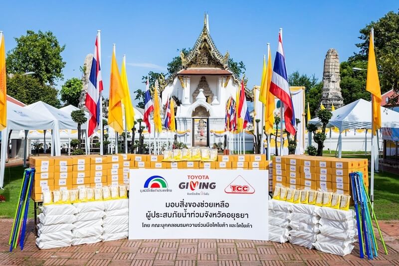 บริษัท โตโยต้า มอเตอร์ ประเทศไทย จำกัด และคณะบุคคลชมรมความร่วมมือโตโยต้า ได้ตระหนักถึงความเดือดร้อนของประชาชนจากสถานการณ์อุทกภัยในพื้นที่จังหวัดพระนครศรีอยุธยา โดยได้ประสานความร่วมมือกับหน่วยงานราชการ เร่งดำเนินการให้ความช่วยเหลือเพื่อบรรเทาความเดือดร้อนในเบื้องต้น ผ่านการการส่งมอบข้าวรัชมงคล จำนวน 1,000 กิโลกรัม และอุปกรณ์ทำความสะอาด จำนวน 500 ชุด